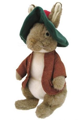 | ピーターラビットのいとこで、大きな帽子が印象的なベンジャミン・バニーのぬいぐるみです。ピーターラビットの世界がリアルに演出されており、とても可愛らしいつくりになっています。 |