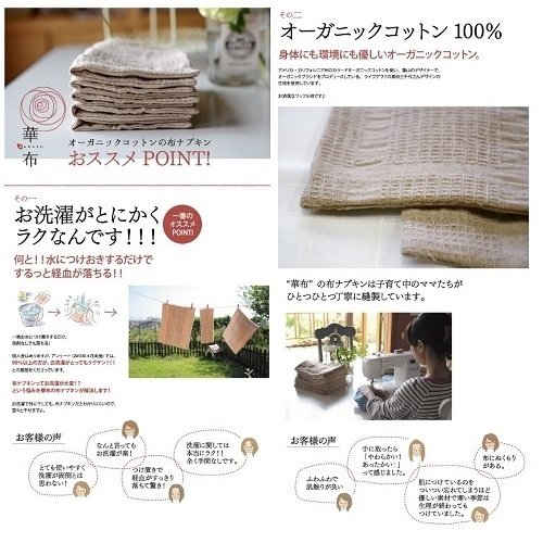 Cloth napkin of Huawei's organic cotton [Snap liner S] (about 13 x about 13 cm) 1 for wild pots / urine leak / liner / holder