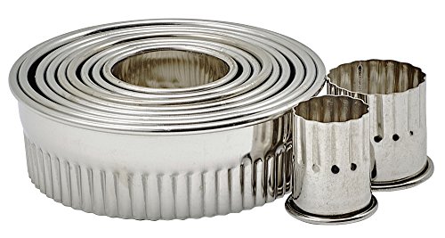 Winco CST-1 11 Piece Fluted Round Stainless Steel 1" to 3" Diameter x 1"H Cookie Cutter Set