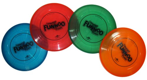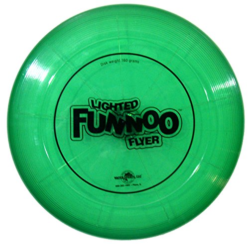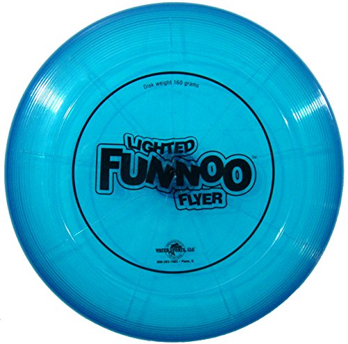Studio : Water Sports Publisher : Water Sports Binding : Toy Product Description Made of strong, waterproof material, the Original Funnoo Flyer is perfect for poolside and beachside recreations. With bright colors and the Funnoo logo on its front, the FUNNOO Flyer is visible against grass, sand and gravel. What makes this Flyer unique is its light-up design! Like a spaceship, this Flyer glides in the night leaving behind a luminescent streak. Like a traditional frisbee, watch the FUNNOO Flyer saucer fly through the air and skip across wet surfaces. It skips like a stone across pools and lakes, and hovers in the air like a saucer. Play catch, monkey in the middle or even FUNNOO Flyer Golf with your whole family. With a bright visible design and an aerodynamic construction, the FUNNOO Flyer is easy to catch, and glides like a frisbee! This product weighs 170-grams and is lighter and easier to handle than normal frisbees. 0