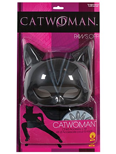 -. Binding : Apparel -. Brand : Rubie's -. ClothingSize : One Size -. Color : Black -. Department : girls -. EAN : 0082686171229 -. Feature : Kit includes mask, glovelettes, and nails / Great accessory to complete your Catwoman outfit / Great for dress up, cosplay, or Halloween / Be a cat, be Catwoman, or just be sexy - this costume is perfect / Quality construction for a night of hissing and scratching -. IsAdultProduct : 0 -. Label : Rubies Costume Co -. Manufacturer : Rubies Costume Co -. Model : 17122 -. MPN : 17122R -. PackageQuantity : 1 -. PartNumber : 17122R -. ProductGroup : Toy -. ProductTypeName : ACCESSORY -. Publisher : Rubies Costume Co -. Size : One Size -. Studio : Rubies Costume Co -. Title : Girls Catwoman Costume Kit -. UPC : 082686171229