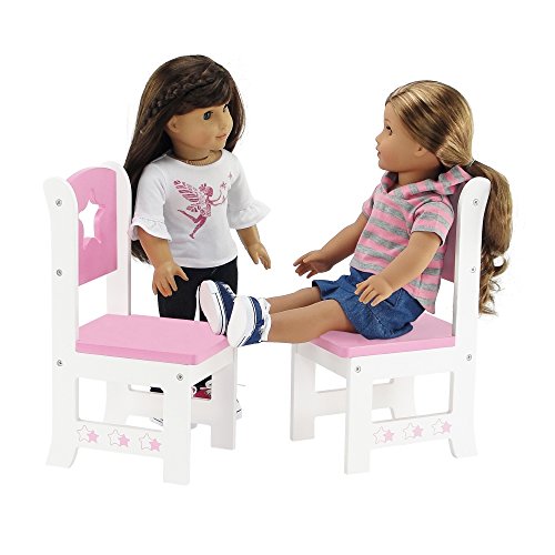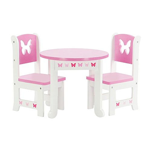 -. Feature : Made to fit 18 Inch dolls such as American Girl, Madame Alexander, Our Generation, Gotz, etc. / High quality boutique style painted wooden product - CPSIA safety tested. / Awesome 18" doll pink and white kitchen/dining chair VALUE set, with cute butterfly theme. Sturdy and durable, made to last! / Lovely and unique, this table and 4 chair set is part of our exclusive Emily Rose Butterfly design collection, and is perfectly sized for your special dolls to have a tea party! / Designed and manufactured by Emily Rose Doll Clothes TM, safety tested. Ships flat and unassembled, requires easy assembly.