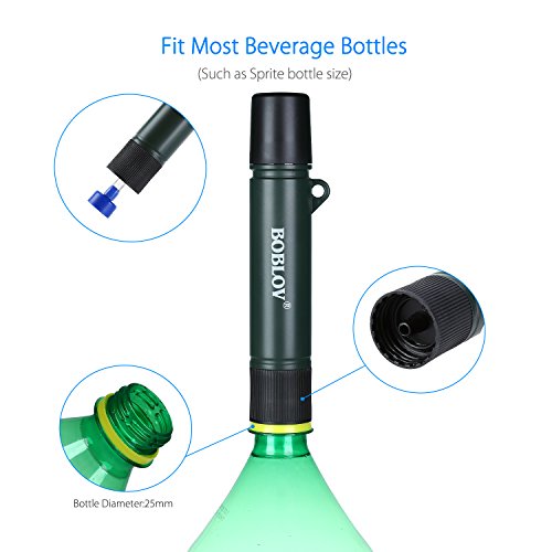 Studio : China Oem Publisher : China Oem Product Description BOBLOV portable and lightweight water filter straw is ideal for emergency and outdoor use,allowing Travelers and campers to have instant access to safe and clean membrane and antibacterial carbon filtration. the Straw by filter 99.9999% of colibacillus,legionella,99.99% of Giardia Lamblia,cryptosporidium,and remained chlorine,THMs,etc. Note: 1. This product through the filter to filter, to achieve water purification, so the filter has a certain delay on the water flow, the water flow rate is relatively common bottle of water slower; 2. Hand squeeze the bottle and suck the process should be maintained under constant pressure, the water will continue to squeeze the bottle 2-4 seconds after the flow out from the drinking water pipe; 3. When drinking water should keep the bottle upright, the bottle tilt angle greater than 45 °, will reduce the water flow; 4. After each use, with the water inside the bottle to clean and dry; Note: Do not use soap, detergent and other cleaning filter; 5. Can not filter with carbonated, fragrance of the beverage, which will damage the filter, affecting the filter effect; can not use chlorine on the filter for disinfection; 6. Replace the filter, can not be used again, should be abandoned; 7. long-term unused water bottle before re-use, should clean the filter system; 8. found ceramic filter block, you can first rinse with water, if necessary, you can use the grid gauze gently scrub. After exposing the surface, you should confirm whether there is a crack, if there is a crack on the filter effect will have a great impact, must be replaced, and vice versa can be replaced.