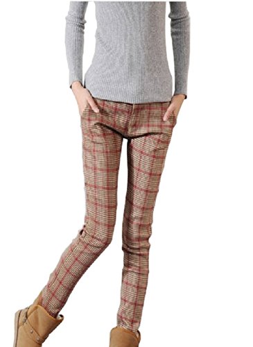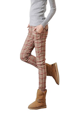 -. Title : (ミルベ) MILBET スキニー スムースタッチ 裏起毛 チェック パンツ ベージュ ストレッチ スリム レディース グレンチェック