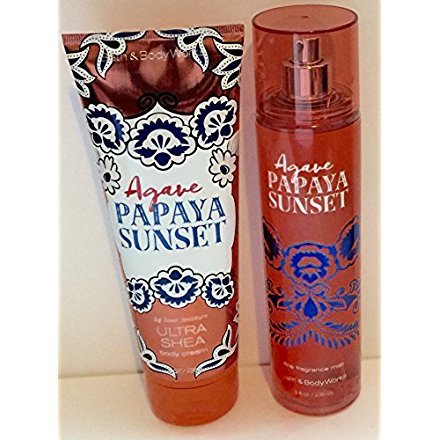 -. Feature : Bath & Body Works Ultra Shea Cream Agave Papaya Sunset 8 Oz, Fine Fragrance Mist Agave Papaya Sunset 8 Oz / Conditioning aloe mist nourishes skin / 1 - Ultra Shea Cream and 1 - Fine Fragrance Mist / 24 hours of continuous nourishing moisture / Enriched with skin soothing aloe butter and pampering cocoa butter