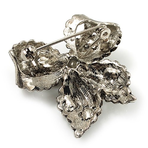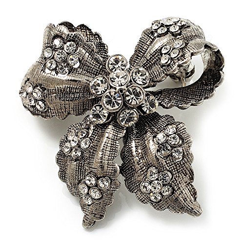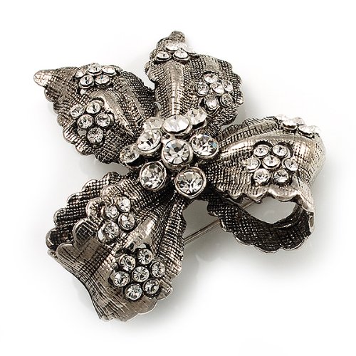 -. Title : Small Vintage Diamante Bow Brooch (Burn Silver Finish)