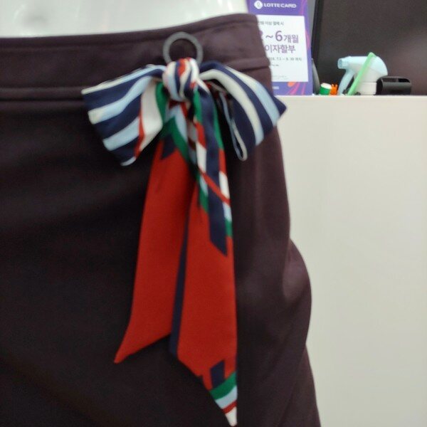 스판들어가 있는 스커트로 편하고 스카프 가 포인트
