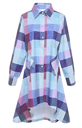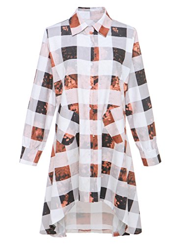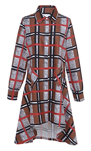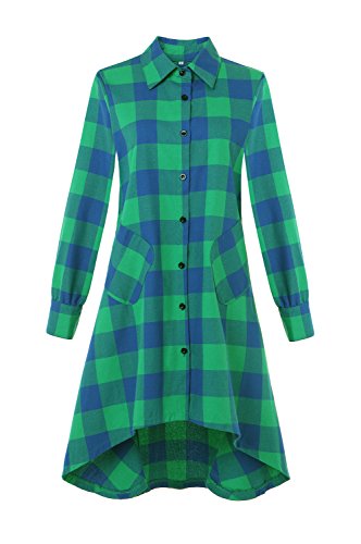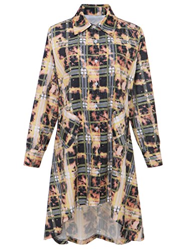 Womens Single Breasted Plaids Irregular Hem Casual Shirt Dress.