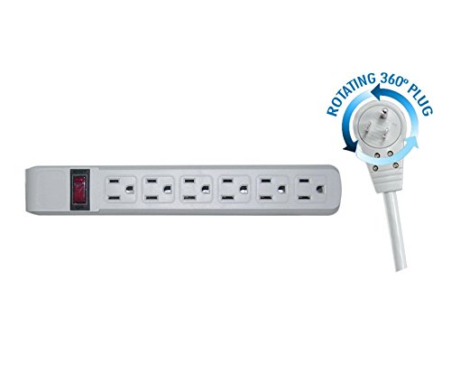 C&E Surge Protector, Flat Rotating Plug, 6 Outlet, Horizontal Outlets, Plastic, Power Cord, 25 Feet, Gray, CNE470776