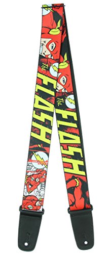-. Title : DC Comic Theme Nylon Guitar Strap - The Flash Large Text & Face Pose