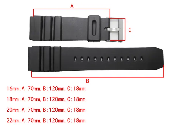 Jawoder 줄 16 18 20 22 미리메터 블랙 실리콘 고무 시계 밴드 스트랩 핀 버클 casio g-shock 스포츠 시계 스트랩