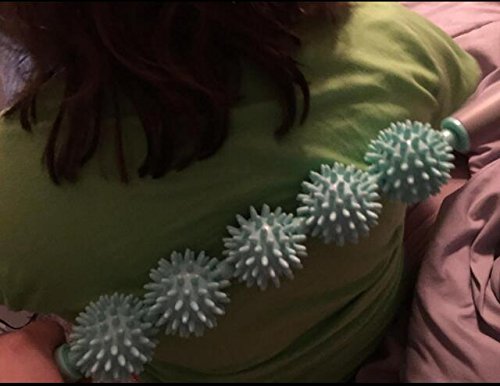 Size: length 16.5inch * 2.35inch Material 5 silicone roller balls Foam handle, Comfortabe to hold,eliminate hand pain and prevent slippage when massaging.