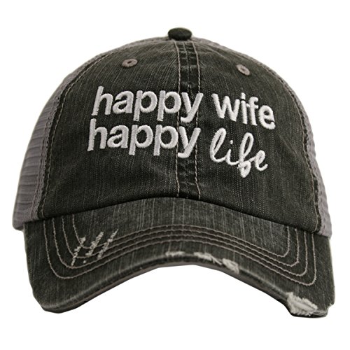 -. Title : Happy Wife Happy Life Women's Distressed Grey Trucker Hat