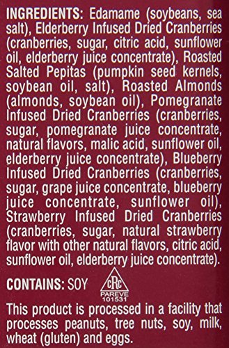 -. Feature : With Edamame, Cranberries, Almonds & Pumpkin Kernels / Contains soy / 0g trans fat / High protein