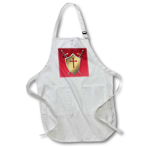 3dRose apr_40074_4 Golden Shield with Crossed Swords and Christian Cross and Background Full Length Apron with Pockets, 22 by 30-Inch, Black