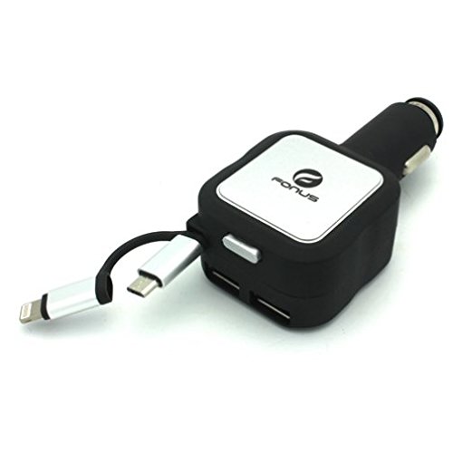 -. Feature : FONUS High Quality Powerful Retractable Car Charger Extra Two USB Ports. Easily Retracts The Cord At The Touch Of A Button. / High performance, compact device. Powerful 4.8Amp output. State of the art Intelligent Chip circuit prevents overcharging. / With its built-in adapter, you can use this charger for iPhones, iPads and Android Phones, Tablets. / Smart IC chip recognizes a fully charged battery and automatically switches to a saver mode. / Standard Cigarette Lighter plug fits most automobiles, RVs, boats. Convenient compact size with tangle-free wire to use with ease. - No more tangles or cable clutters in your car. (NO Extra USB Cable included).