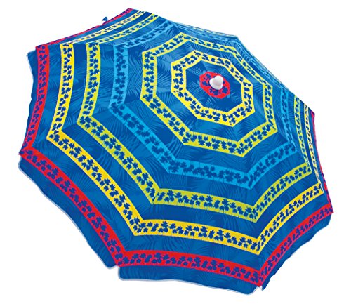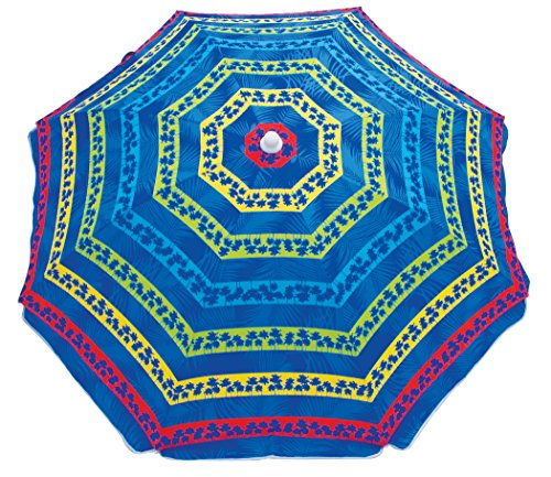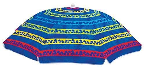 Rio Brands Paradise Awaits Palms Stripe Beach Umbrella with Sun Block, Blue Stripe