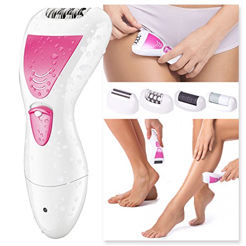 Epilator for women Waterproof 4 in 1 Set With Wet Dry Electric Callus Remover Nail File Bikini Trimmer and Shaver For Women USB Rechargeable by Surker