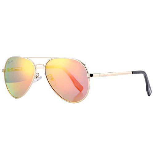 -. Feature : PRODUCT DIMENSION - Lens width:52mm (2.05") | Lens height:45mm (1.77") | Bridge width:16mm (0.63") | Frame width:135mm (5.31") | Arm length:135mm (5.31") / SUITABLE for JUNIOR and ADULT - Since the lens width is 52mm, these are perfect for adult small face, junior, children and kids. / 100% POLARIZED LENSES - These Classic Aviator Sunglasses is polarized and provide 99% Polarization efficiency while blocking and managing UV and HEV light, delivering a superior visual experience and glare protection. Polarized sunglasses eliminate glare and haze so your eyes are more comfortable and you can see better. Polarized lenses contain a special filter that blocks this type of intense reflected light, reducing glare. / PREMIUM MATERIAL POLYCARBONATE LENSES - Polycarbonate is a durable material. Although it has high impact-resistance, it has low scratch-resistance and so a hard coating is applied to polycarbonate sunglass and eyeglass lenses. Polycarbonate is highly transparent to visible light, with better light transmission than many types of other lenses. / 30 DAYS MONEY BACK GUARANTEE - 100% Satisfaction Guaranteed. Please just let us know if you're not happy with your purchase within 30 days, and we'll take care of you. You have no risk to try.