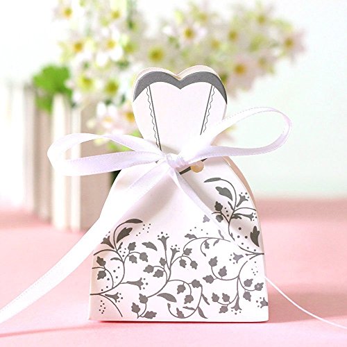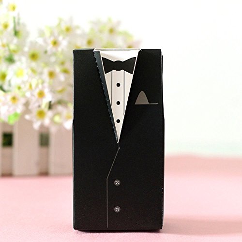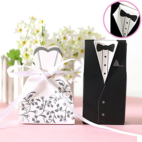 20pc Set of Bride and Groom Wedding Party Favor Boxes - Dress Tuxedo Bridal Candy Gift Guests Rehearsal Dinner Shower Bachelorette Bachelor His & Hers...