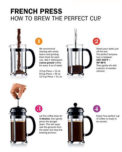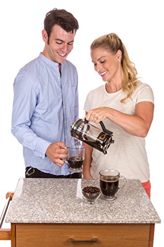Feature : CLASSIC DESIGN - Stainless steel and heat resistant glass - Perfect match for any kitchen! Ergonomic handle stays cool to the touch and allows you to pour your coffee or tea with confidence. Smooth and silent plunger ensure no screeching sound. 34 oz/1000ml makes four 8oz coffee mugs, or eight 4oz cups of coffee. / THE PERFECT CUP, EVERY TIME - Layered stainless steel plunger guarantees rich, aromatic coffee with all of the flavor and natural oils. No paper filters means no waste, and the coffee's essential oils go directly to your cup, delivering the true flavor that is lost on traditional filters. / THE PERFECT GIFT - The perfect gift for the coffee or tea lover in your life. The BOJE French Press works great for ground coffee or loose leaf teas. Whether it's for a wedding, house-warming, birthday, Christmas, or 'just because' gift, you can give the BOJE French Press with confidence. / MAKE A DIFFERENCE! - A percentage of all profits go to Kiva, an organization that makes micro-loans to people in the developing world in order to help better their standard of living. Once the loans are repaid, that money is re-loaned out. The gift that keeps on giving. / LIFETIME GUARANTEE - At BOJE TruGrowth we stand behind our products. If for whatever reason you are not completely satisfied just contact our seller account and we will happy to assist you! GET YOURS NOW! Just click "ADD TO CART"!