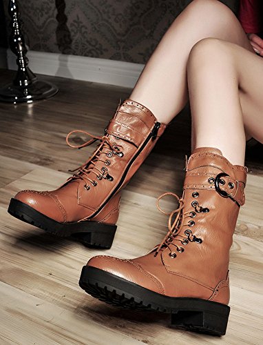 Binding : Apparel Product Description When you walk in the street or take part in some special occasions, do you want to be charming and attractive among others? Or are you tired of wearing the same booties with others? How could you miss these trendy outfits? This pair of comfy boots has lace up design. You will like their antiskid, durable and waterproof design. With the chunky heel, you could be at ease when you dress in the comfortable shoes. Many people are in favor of its casual, fashion and elegant style with the closed round toe, mid calf and solid color. In the fall and coming winter, it's a must. They can fit any formal occasions, like wedding, party and club. With one, you will be the focus of fashion. Young ladies can buy one with your close friends. They are a wonderful gift. They are also easy-matching. Choose one suitable size so that it could fit you well. Welcome to our store. IDIFU is a registered trademark in the USA. We always work on helping every fashion lady to be unique and different. As a trendsetter, YOU ARE DIFFERENT! 0