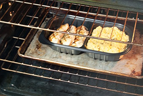 - REUSABLE OR DISPOSABLE – Both the lid and container are recycleable and may be re-used several times. The container is designed to be disposed of after oven use. **Place on baking sheet prior to baking in oven. Lid is not oven or dishwasher safe.