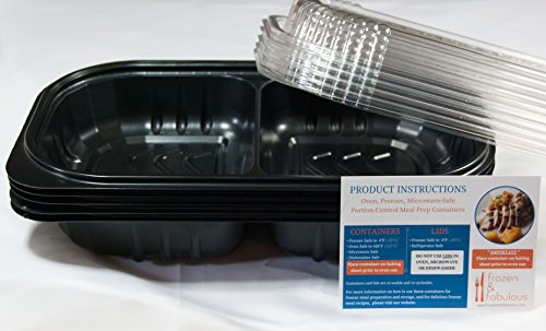 Frozen & Fabulous OVEN-SAFE 2-Compartment Meal Prep Containers by Frozen & Fabulous: OVEN-Freezer-Microwave-Safe PORTION-CONTROL for FOOD PREP ~freezer-to-oven~ SIZE: Serves 2-4 (SET OF 5)