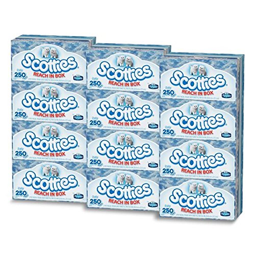 - You'll get 12 Scotties facial tissue boxes, each with a 250 count of 2ply tissues per box. (Packaging may vary from image shown.)