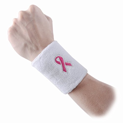 -. Title : COOLOMG (Pack of 2) 3.5Inch Cotton Towel Wrist Sweatband Wristbands Breast Cancer Awareness Pink Ribbon in 3 Colors
