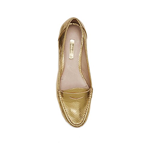 It may have a tiny name, but the Bitsy makes a memorable impression. A classic menswear-inspired shoe gets a diva-like twist. This penny loafer shines mightily in embossed metallic or patent faux snake. Emphasize the daring look with a tailored pant suit.Feature