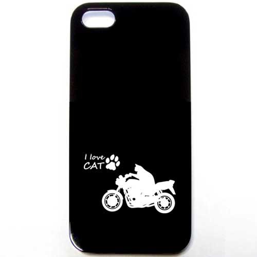 A chic and unique design case designed to silhouette the appearance of riding a motorcycle with a cat as a motif.