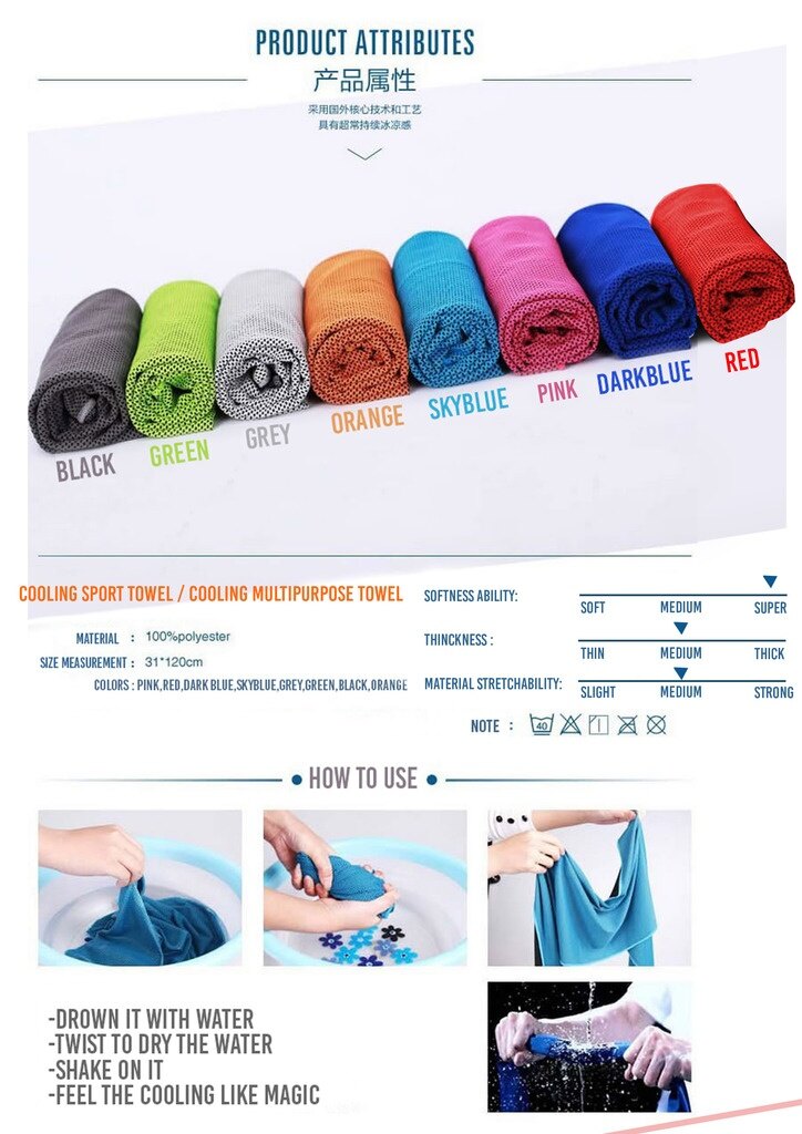 MagicCool Cooling Sport Towel Cooling Tower Fast Cool similar Coolcore Description - Keep you feel cool for several hours when you do outdoor sports in hot summer.