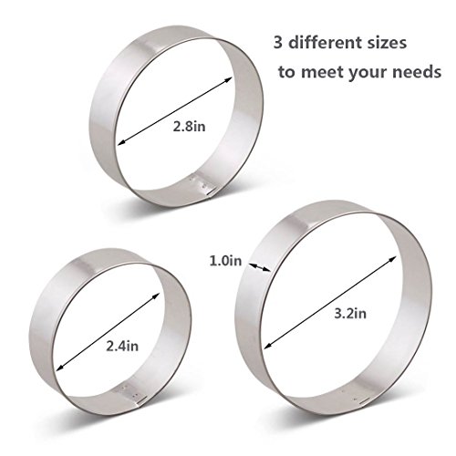 - 3 Sizes are diameter 3.2",2.8",2.4",height are all 1",With this set cookie cutters, you can make different size fun round cookies with easy.