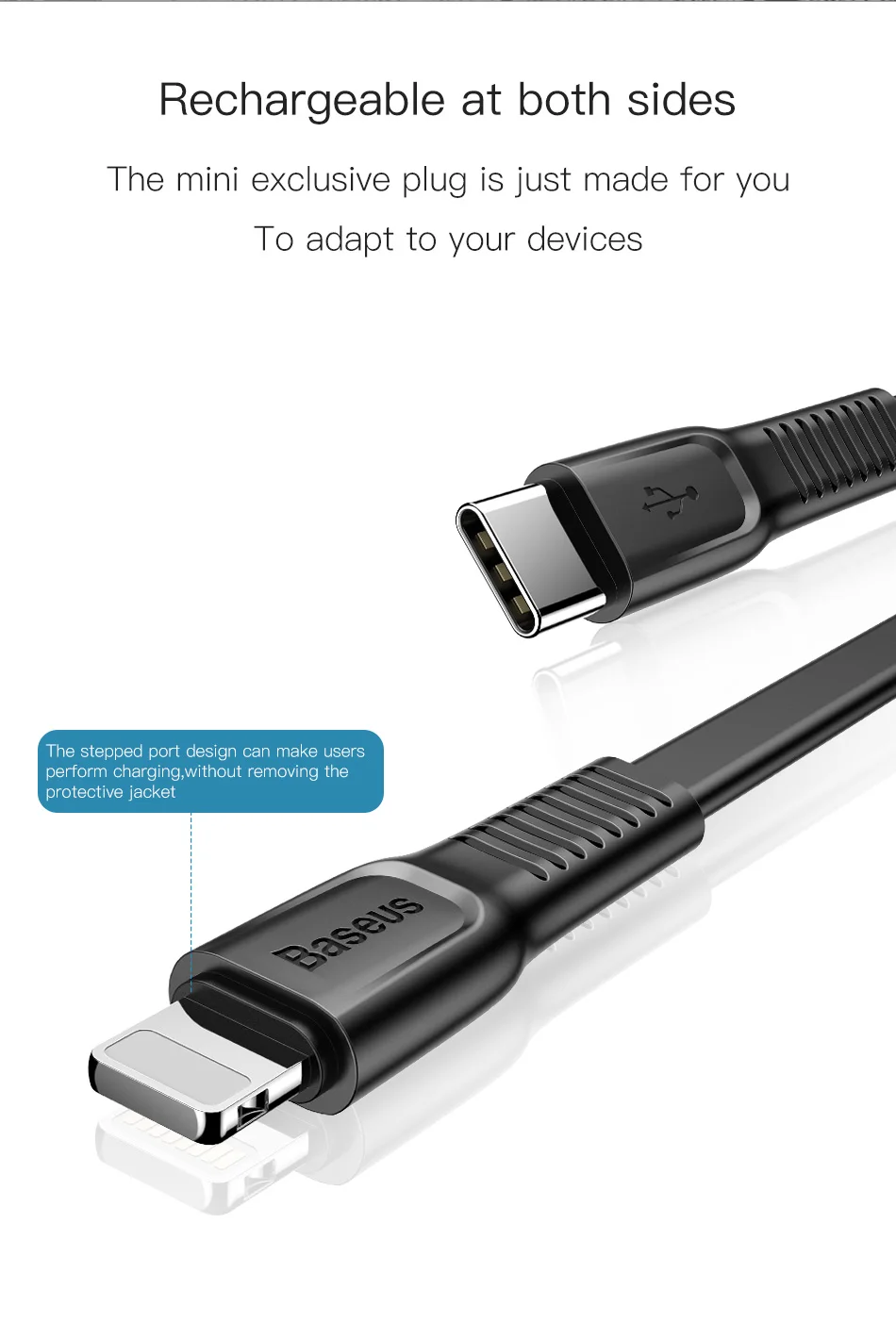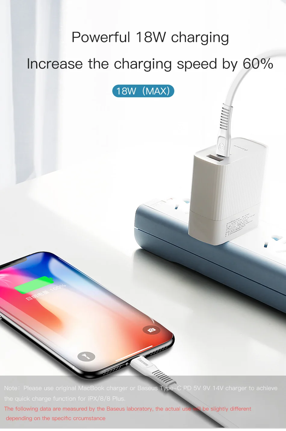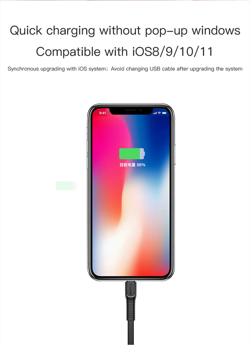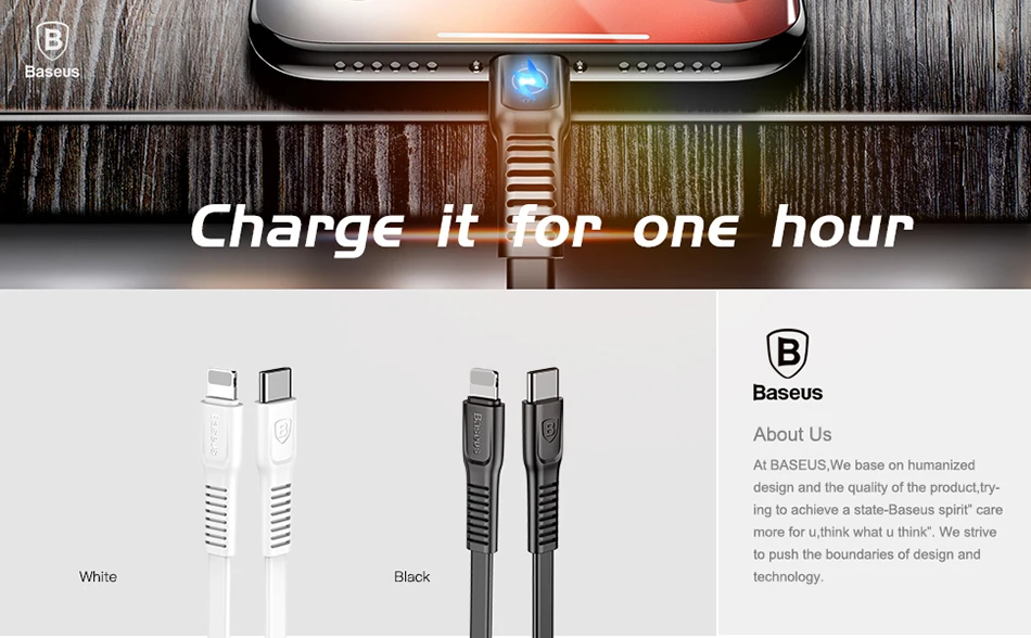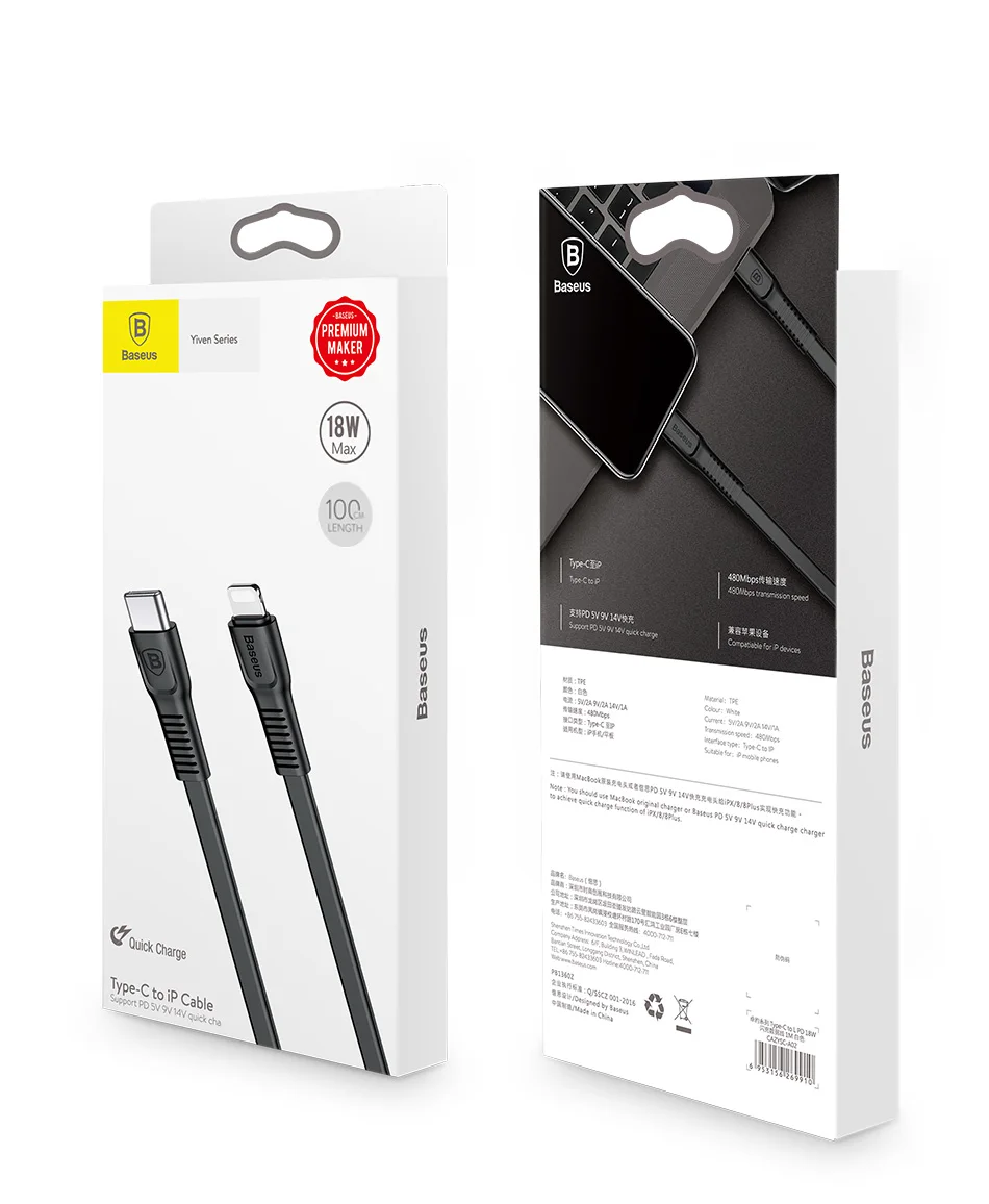 Baseus 18W PD Quick Charge Cable For iPhone X 8 Fast Charging Charger Cable Phone USB-C Charger Cable 2A Type-C Charger Cable