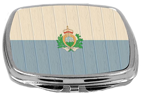 Rikki Knight Compact Mirror on Distressed Wood Design, San Marino Flag, 3 Ounce