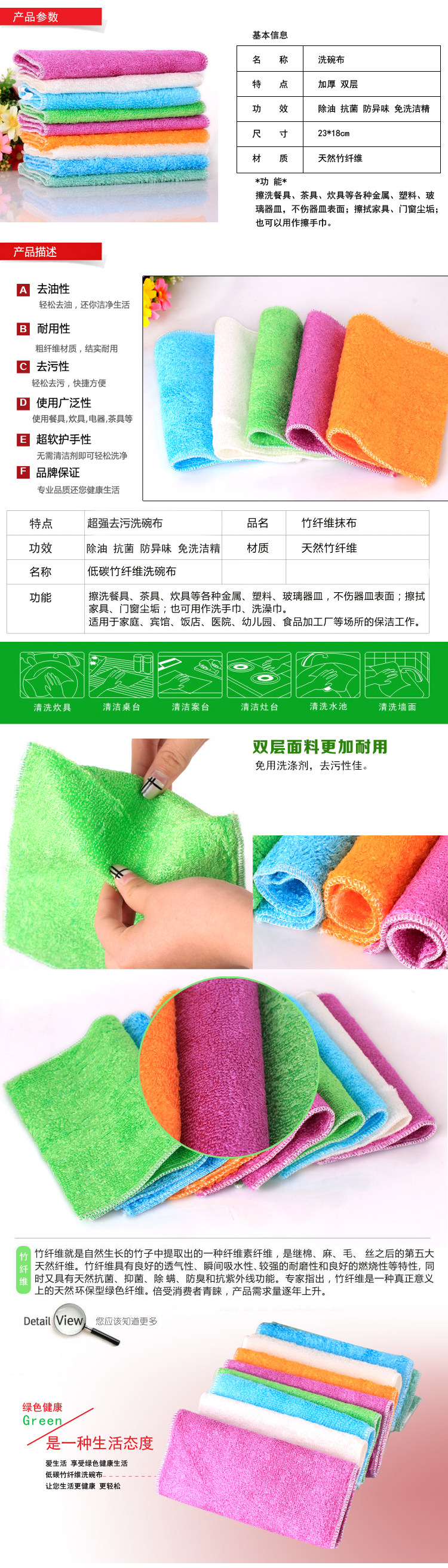 竹纤维洗碗布竹炭不沾油洗碗巾洗碗抹布双层加厚吸水强力
