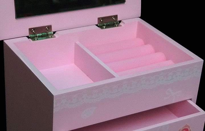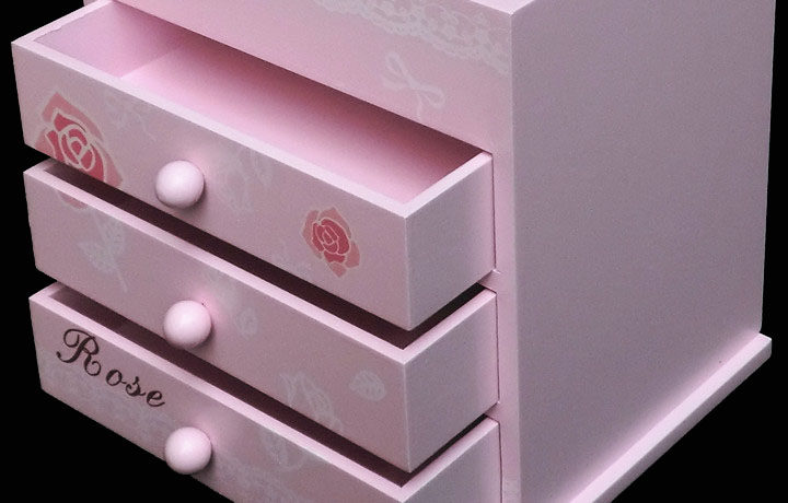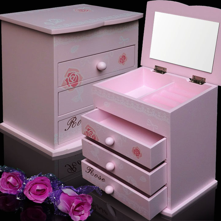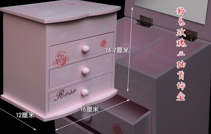 二.粉色玫瑰三抽四层首饰盒 木质带镜子(尺寸见图)