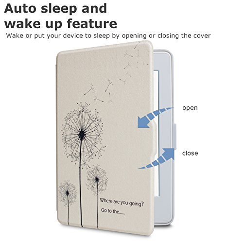 Walnew Amazon White Kindle Paperwhite Case Lightest and Thinnest Premium Leather Smart Protective Cover for New Kindle Paperwhite (Fits versions: 2012, 2013, 2014, 2015), Dandelion
