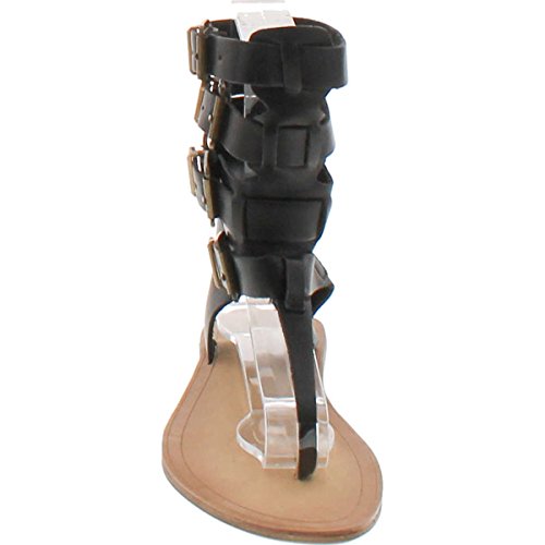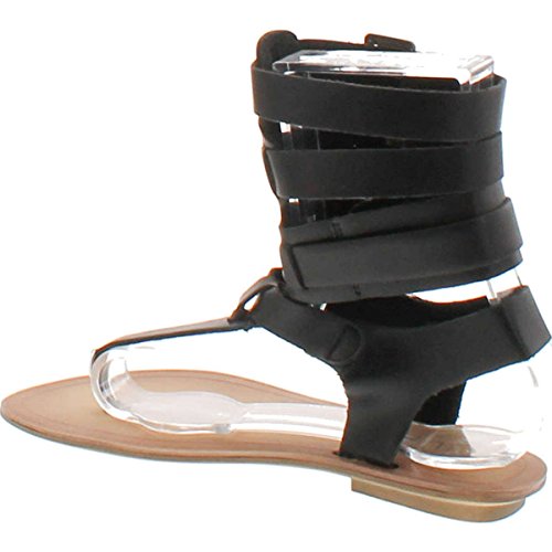 Liliana DB52 Women Leatherette Strappy T-Strap Gladiator Thong Sandal - Black