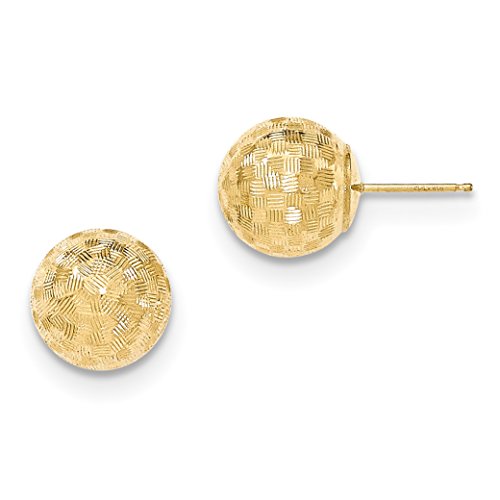 ICECARATS DESIGNER JEWELRY 14K YELLOW GOLD ROUND 10MM CHECKERBOARD BALL POST STUD BALL BUTTON STUD EARRINGS