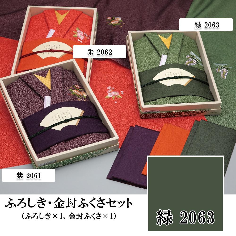 ワンポイントの刺繍の入った落ち着いた色合いのふろしきと、同系色の金封ふくさが入っています。贈り物にも♪ |