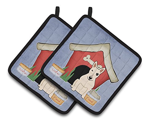 Caroline's Treasures Dog House Collection Bull Terrier White Pair of Pot Holders BB2892PTHD, 7.5HX7.5W, Multicolor