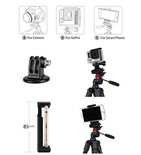 Camera Tripod, Phone Tripod, Gopro Tripod, iStabilizer Travel Tripod with Phone adapter, Gopro Adapter, Quick Release Plate, Tripod Bag for Camera, Smartphone and Gopro