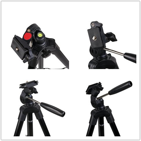 Scope of delivery: tripod, tripod head, quick-change plate, mobile phone adapter, Gopro adapter, tripod bag.
