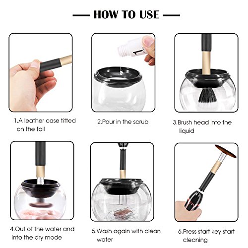 - 【FAST BRUSH CLEANER AND DRYER】: Just in a few seconds, with our automatic electronic makeup brush cleaner and dryer make your brush easily wash off bacteria, cosmetic residue, dead skin cells, dirt and oil on makeup brushes without deforming and prevent skin diseases, which improve your makeup experience and save your time and money in seconds.