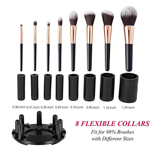- 【ECONOMICAL】: It comes with practical collar stand that can be perfect brush organizer, 8 different sizes of rubber holders, suit for most type makeup brushes.