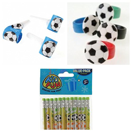 -. Title : Soccer Theme Party Favor Set for 12 / 1 Dozen Soccer Pencils / 12 Party Blowouts / 12 Rubber Soccer Rubber Rings