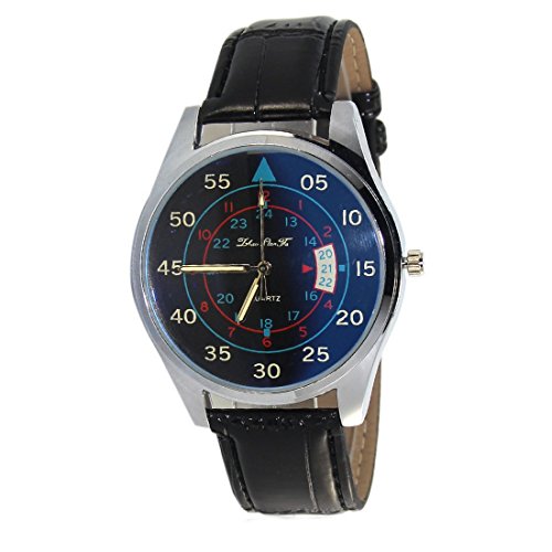 -. Title : Souarts Mens Black Artificial Leather White Dial Quartz Analog Wrist Watch 24cm