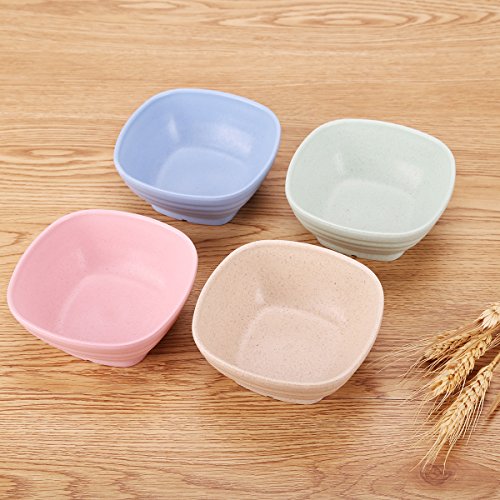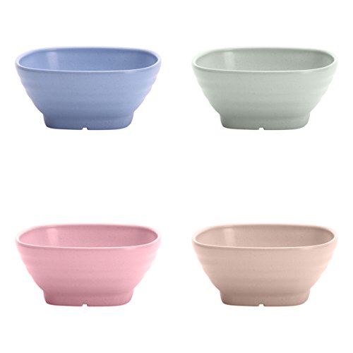 UPSTYLE Eco-friendly Wheat Straw Soup Bowl Biodegradable Bamboo Shape Dinnerware Set Plastic Bowl Tableware Set Square Bowls for Rice, Soup, Fruit or Noodle Size 8.45oz (250ml) Pack of 4